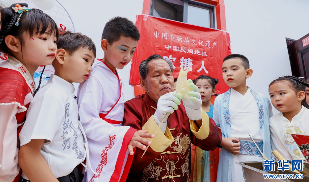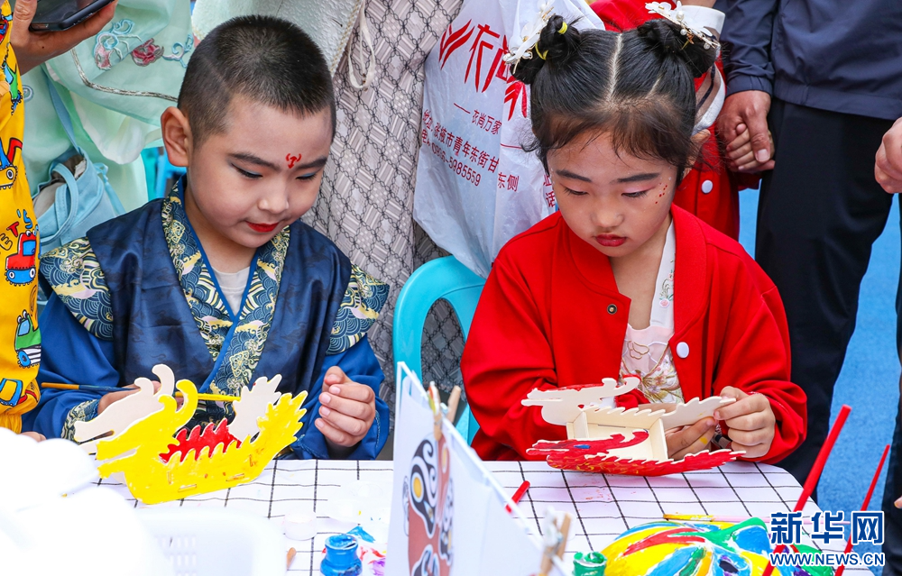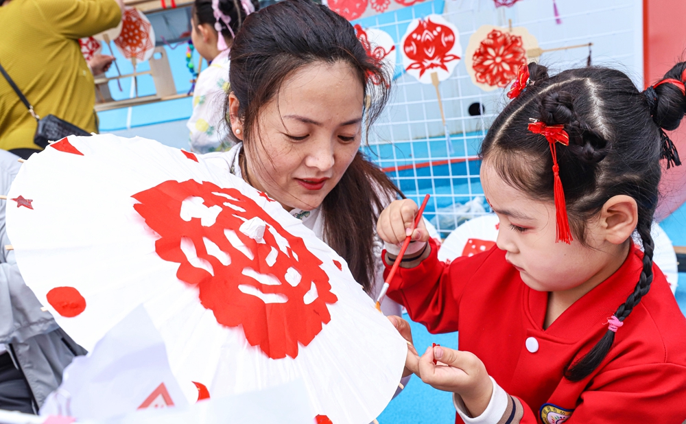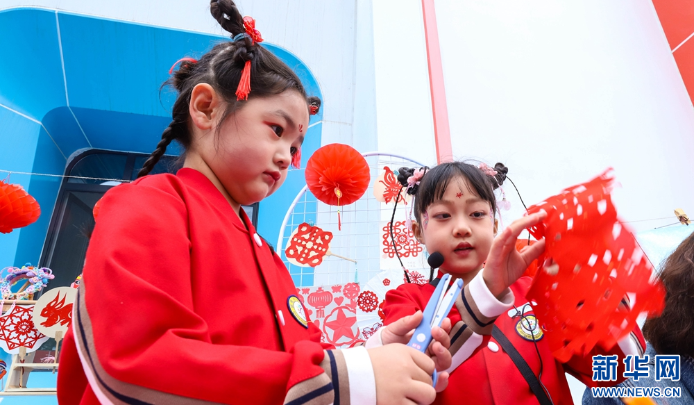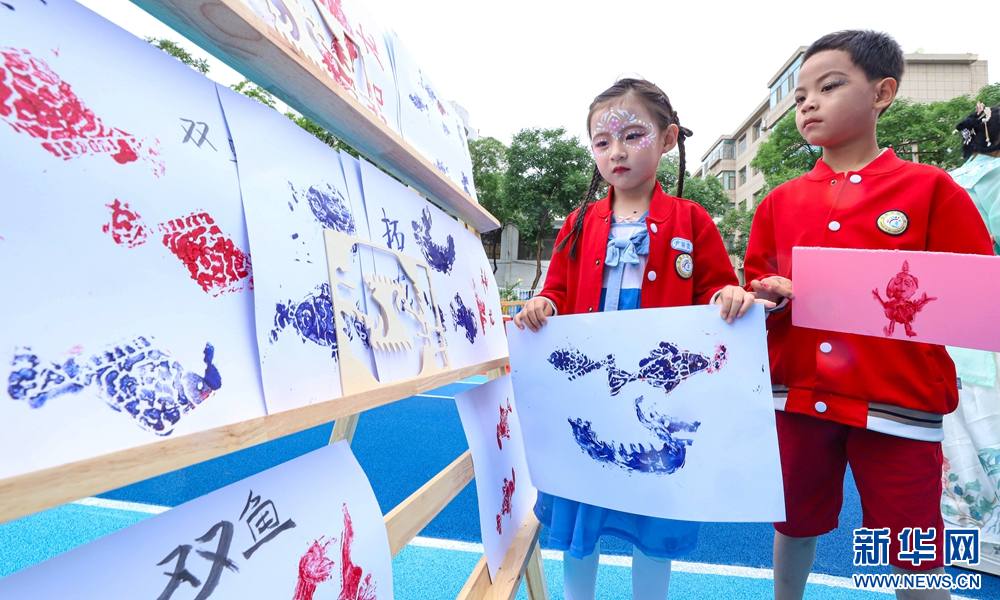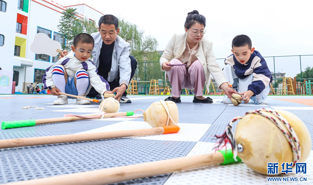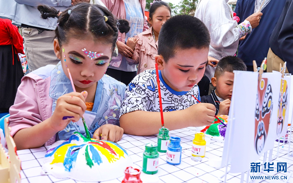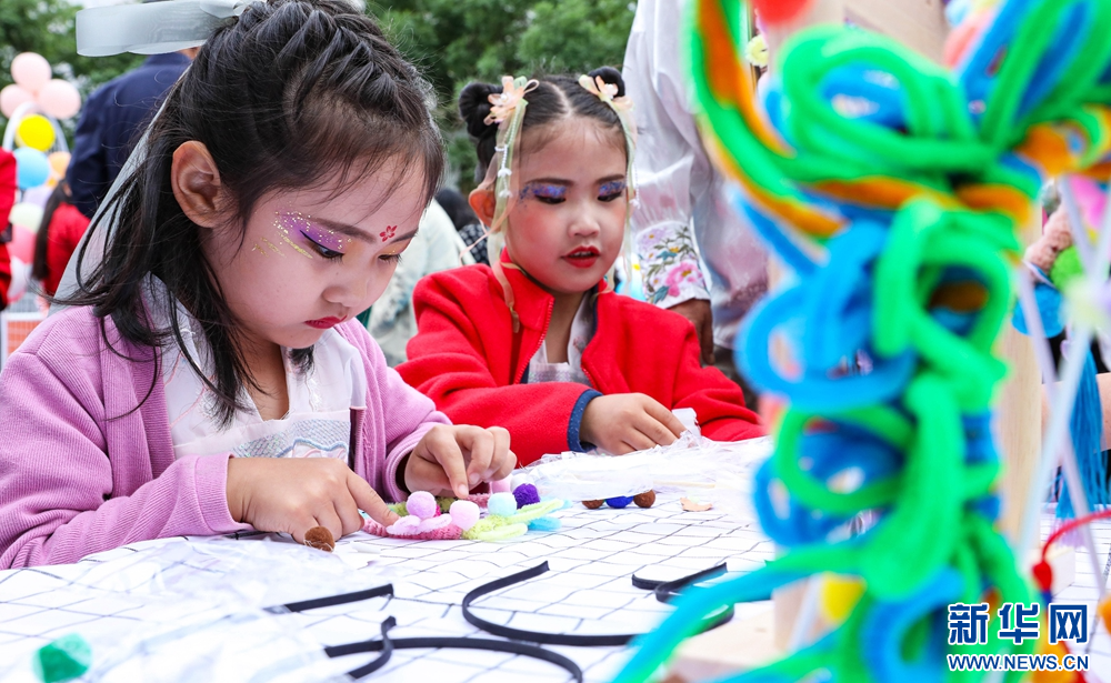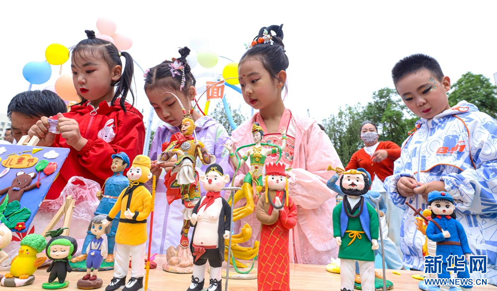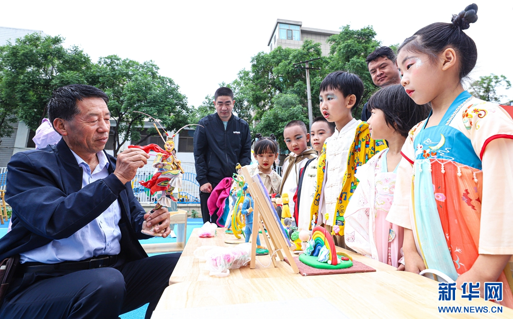 5月28日,甘肃省张掖市幼儿园非遗薪火传承、文化浸润童年迎“六一”游园活动举行。非遗传承人和老师们为孩子们传授非遗技艺、讲解非遗故事,手把手教孩子们学习编织、剪纸、面塑等制作技艺,让孩子们近距离了解非遗文化,感受非遗艺术的魅力、培养动手动脑能力。新华网发(尉婷 摄)