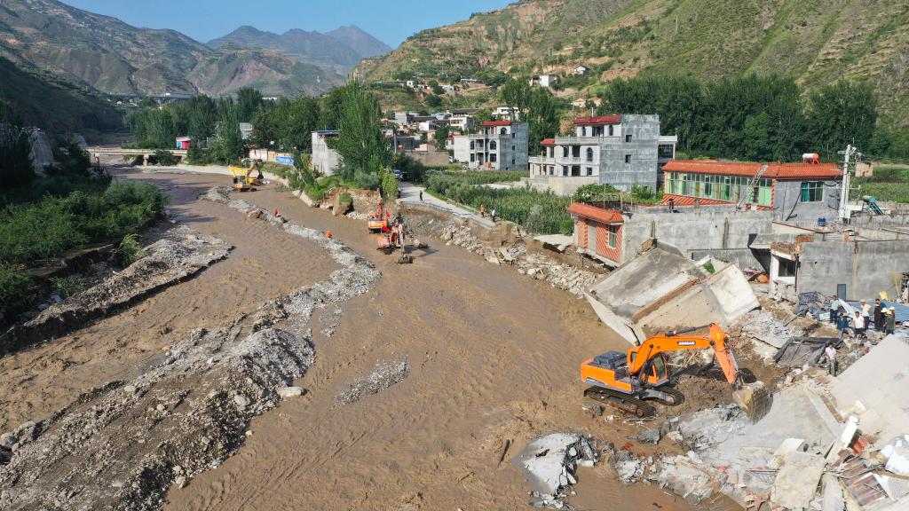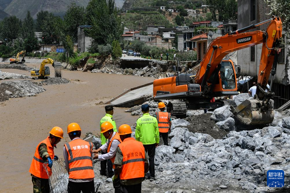 7月22日至24日,受持续强降雨影响,甘肃省陇南市发生洪涝灾害,道路、水利和电力设施、农田等不同程度受损。25日,雨过天晴,各方力量争分夺秒抢修受损基础设施,干部群众齐心协力恢复生产生活秩序。