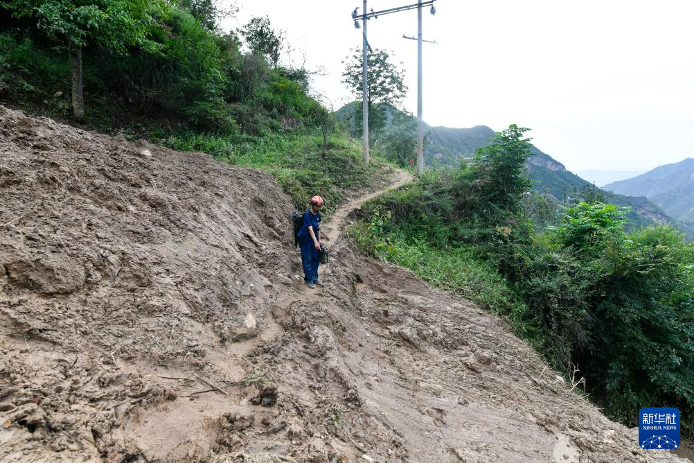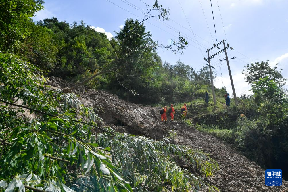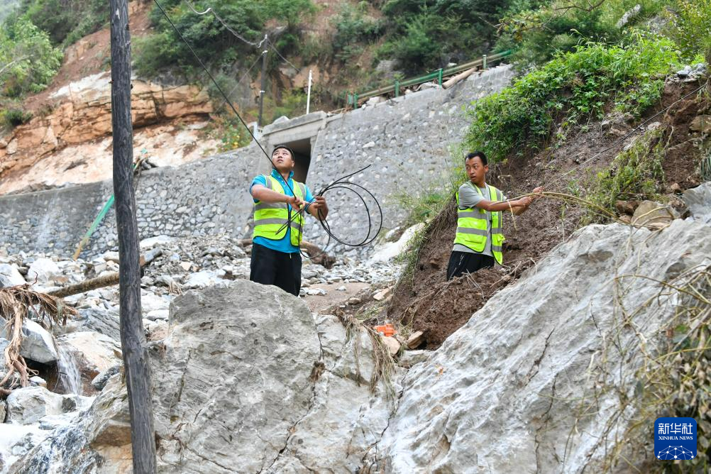 7月26日,2名通讯人员在武都区三河镇姚沟村抢修通信线路。新华社记者 郎兵兵 摄