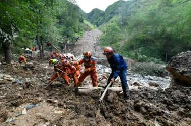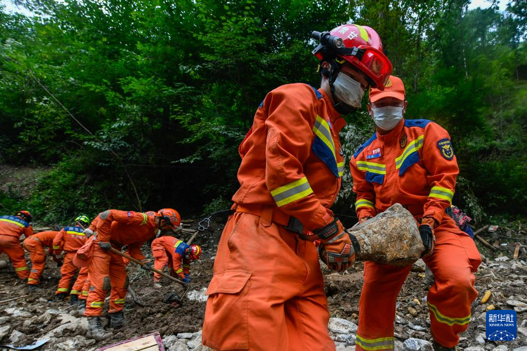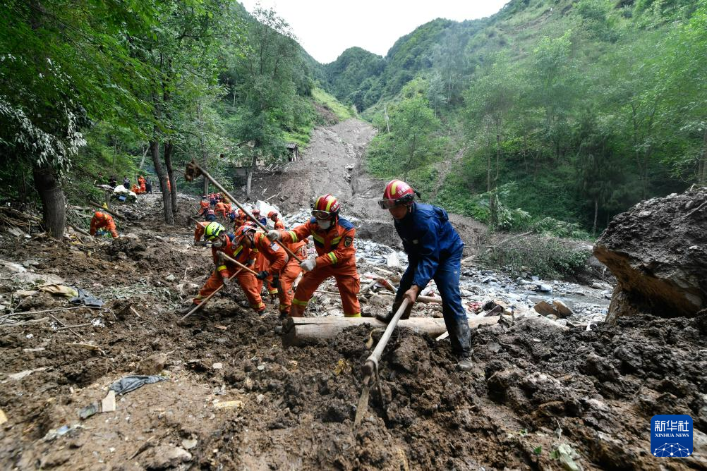 7月26日,在武都区三河镇姚沟村三社,救援人员开展救援。新华社记者 郎兵兵 摄