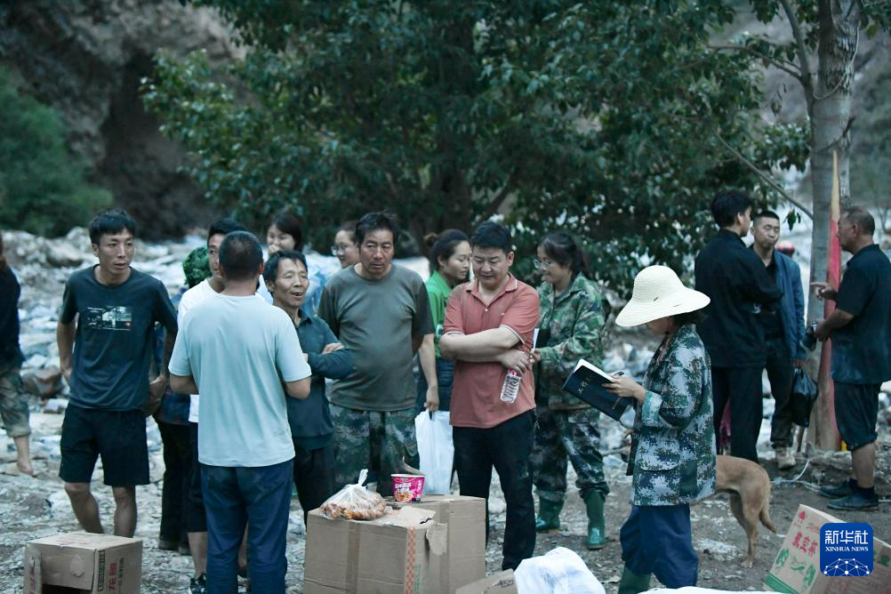 7月26日,在武都区三河镇姚沟村,乡镇干部登记转移下山的村民信息。新华社记者 郎兵兵 摄
