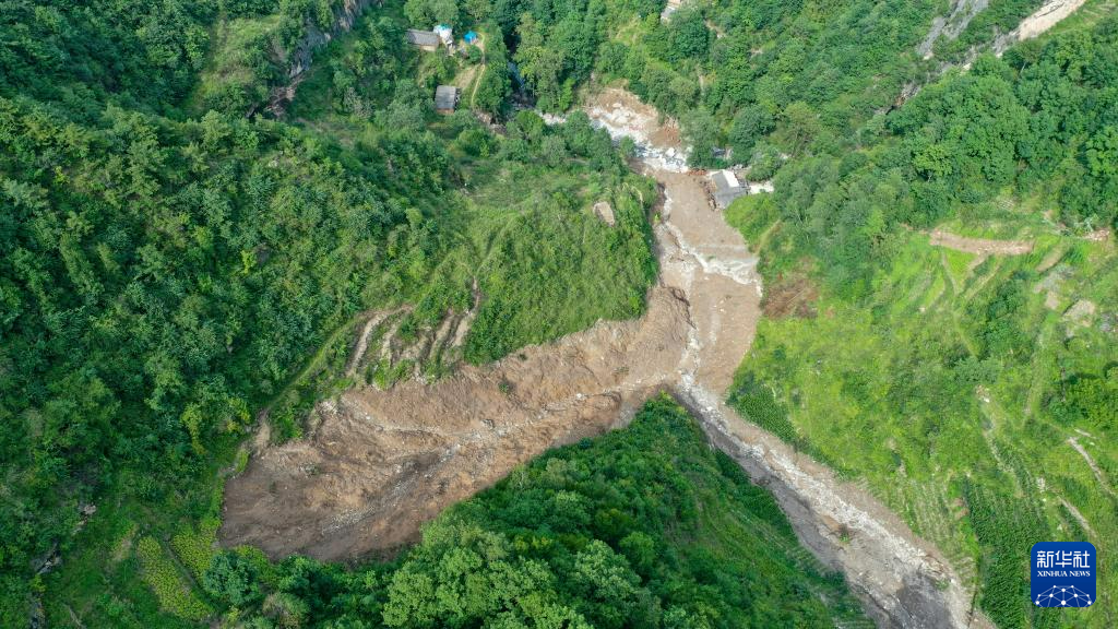 这是7月26日拍摄的武都区三河镇姚沟村三社山体滑坡现场(无人机照片)。新华社记者 郎兵兵 摄