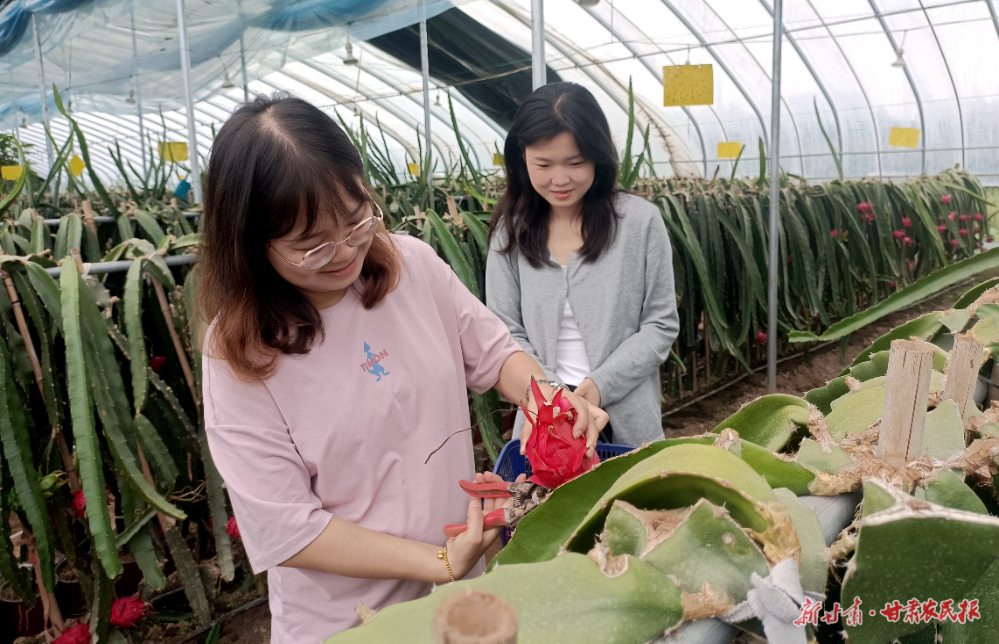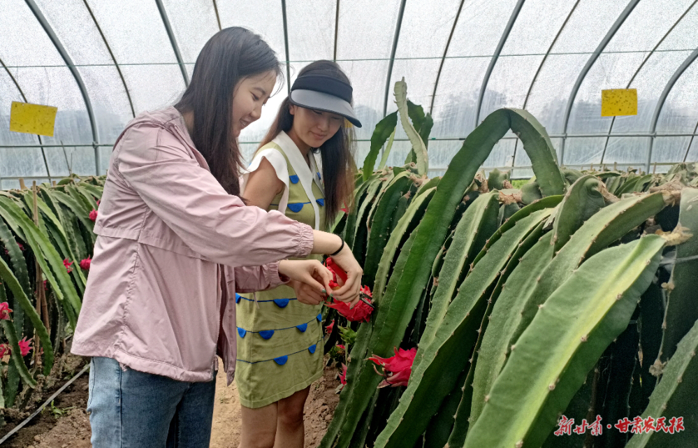 这几天,庆阳市西峰区温泉镇梓轩有机硒火龙果采摘园的火龙果渐次成熟,吸引游客上门采摘尝鲜。火龙果在西峰实现了从无到有、从有到优的突破,“南果北种”的实践成功丰富了市民果篮子的同时,也带动果农走上了致富路。