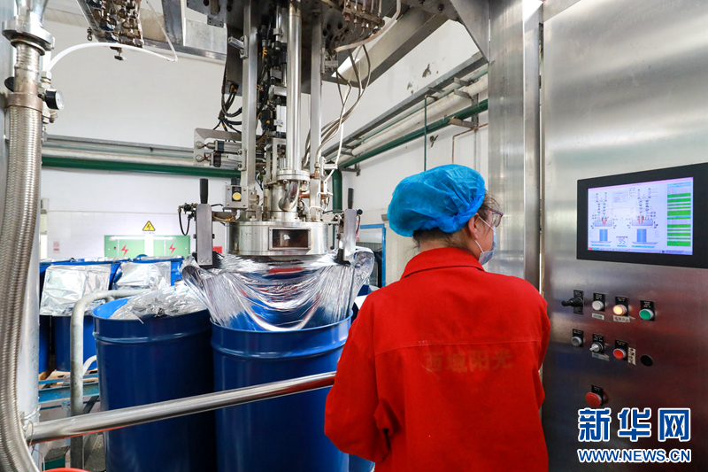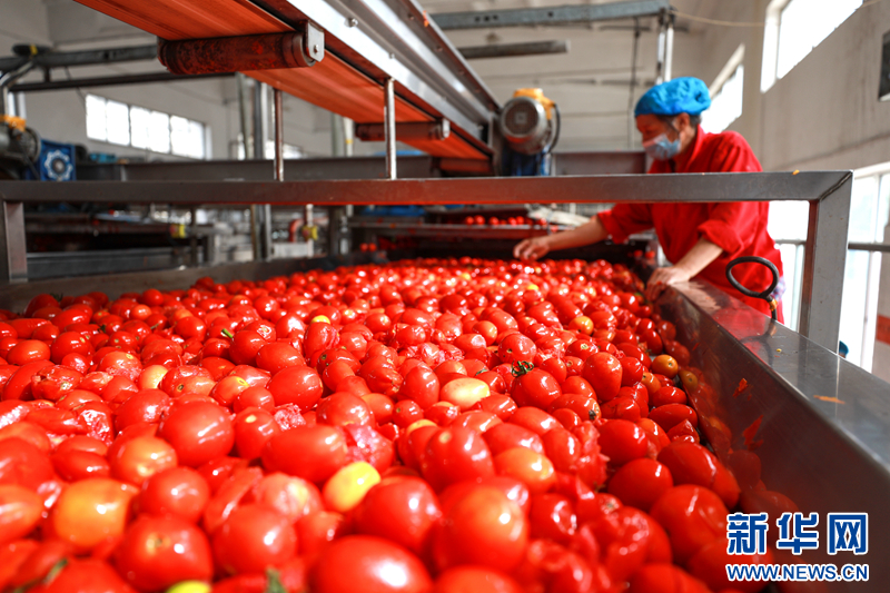8月27日,工人灌装番茄酱。新华网发(裴海洋 摄)