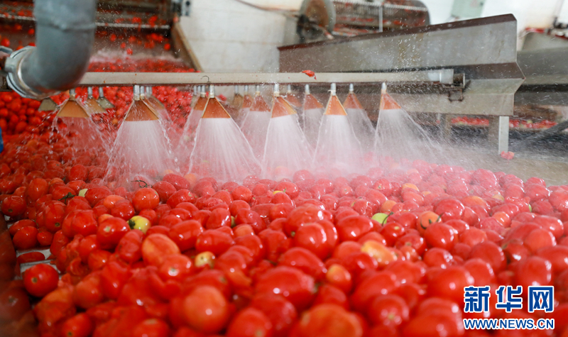 8月27日,机器清洗番茄。新华网发(曹红祖 摄)