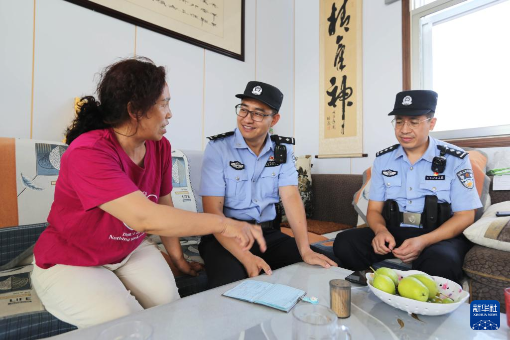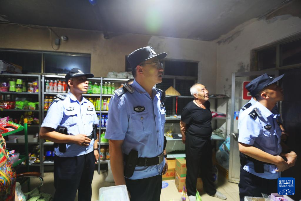 8月26日,甘肃省定西市公安局安定分局汽车站派出所民警李建国(中)和同事在社区了解人员信息。新华社发(王克贤 摄)