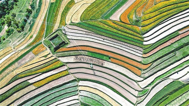 立秋过后,通渭县的燕麦、胡麻、蚕豆等多种小杂粮相继进入成熟期。错落有致的高山梯田,黄绿相间,燕麦、胡麻、蚕豆等农作物从山顶蔓延至山脚,勾勒出一幅色彩鲜艳的秋收画卷。