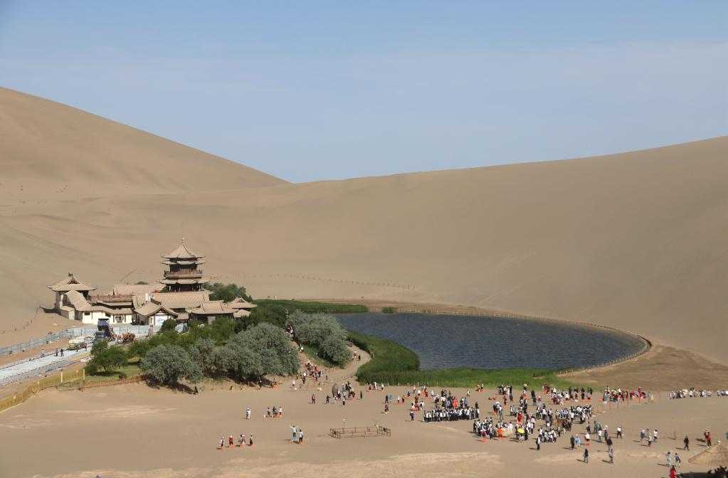 8月24日拍摄的鸣沙山月牙泉。新华社记者梁军 摄