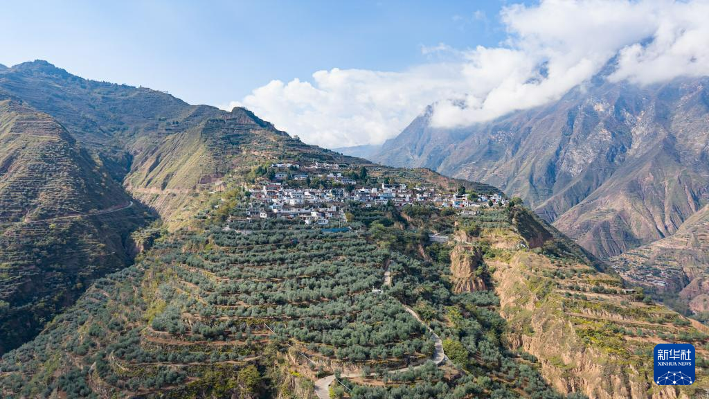这是在陇南市武都区桔柑镇贺家坪村拍摄的一处油橄榄基地(无人机照片,11月1日摄)。新华社记者 郎兵兵 摄
