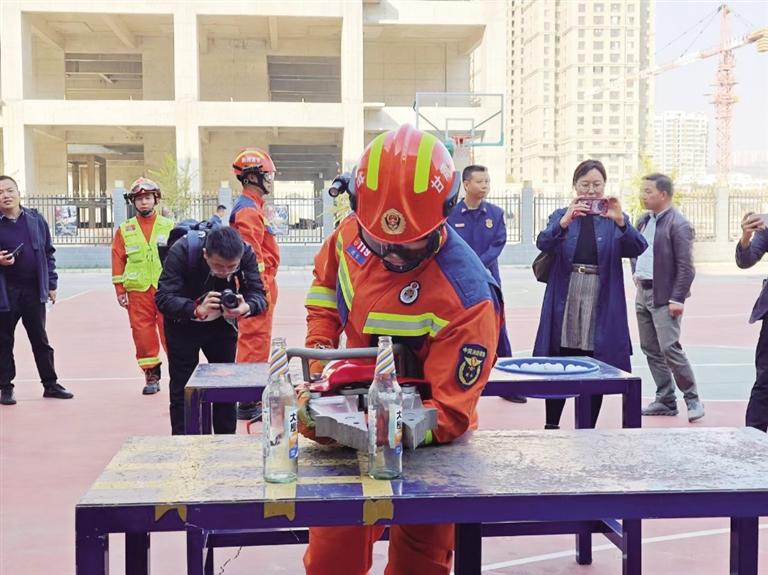 训练场上,队站消防员正在有序开展攀登挂钩梯、爬绳上4楼、纵深灭火救人等操法和科目训练。媒体记者将镜头对准消防员日常开展的训练科目中,从无齿锯精准切割到灭火救援操法,多角度深入了解新时期消防救援队伍承担职能任务的大幅拓展和应对“全灾种、大应急”救援的专业化水平。