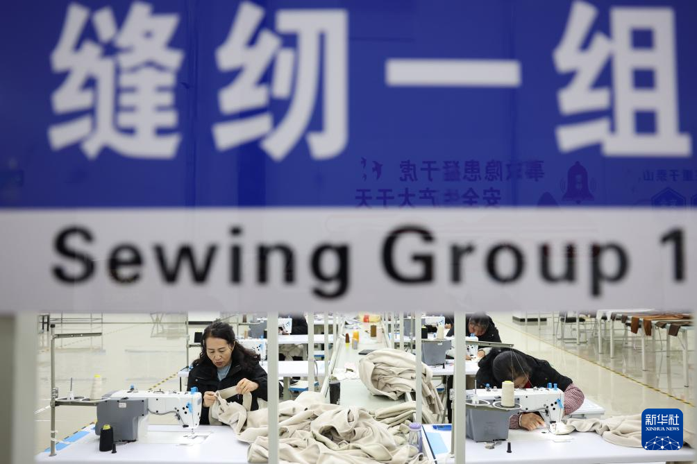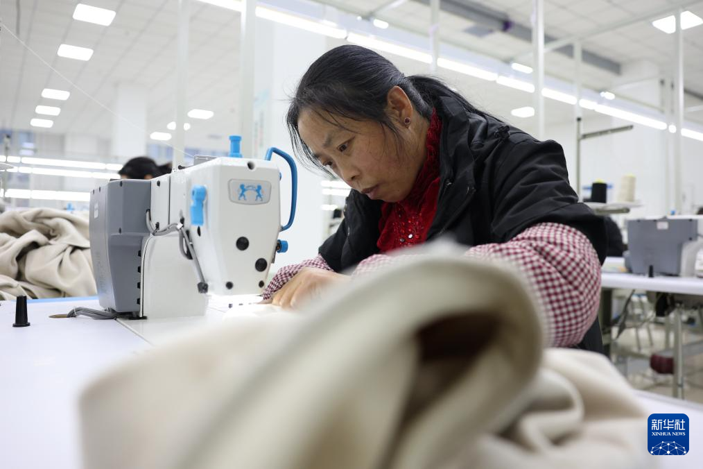 11月19日,工人在甘肃省平凉市泾川县中小企业孵化园内一家服装生产企业的车间内作业。新华社记者 陈斌 摄