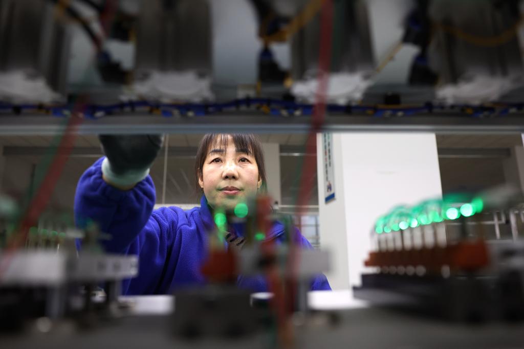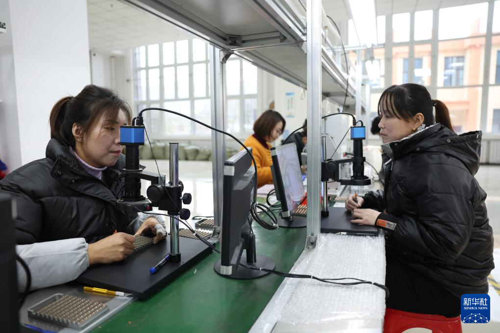 11月19日,工人在甘肃省平凉市泾川县中小企业孵化园内一家机电生产企业的微型振动马达生产线上作业。新华社记者 陈斌 摄