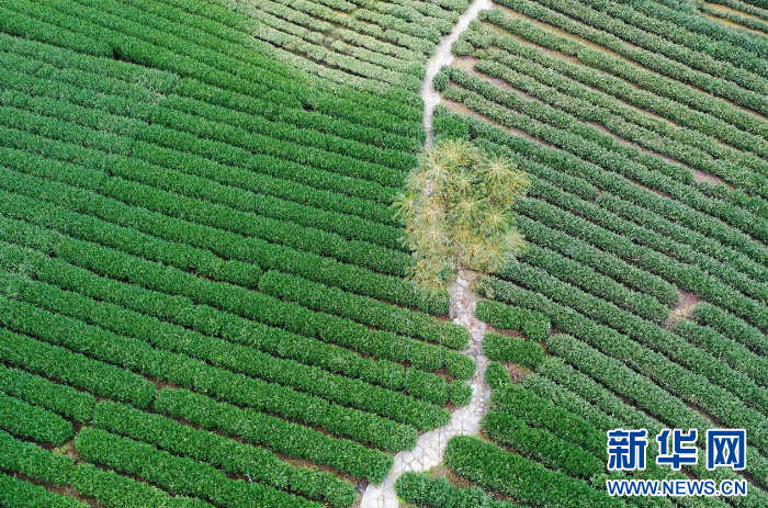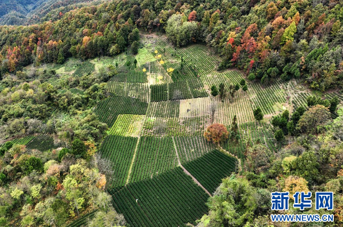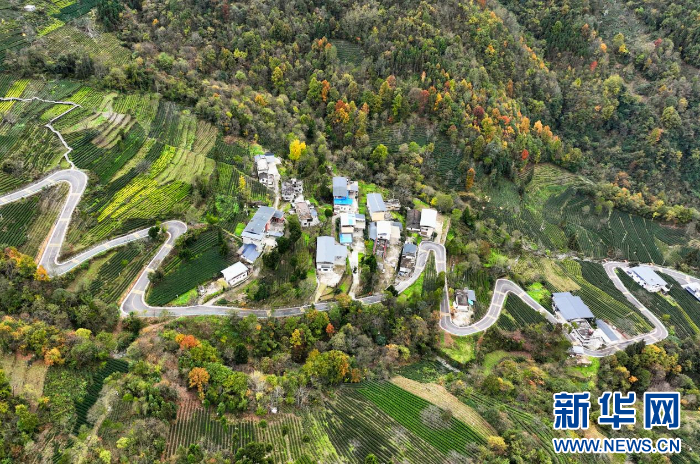 马家山村色彩斑斓的森林“环抱”着茶园。新华网发(冉创昌 摄)