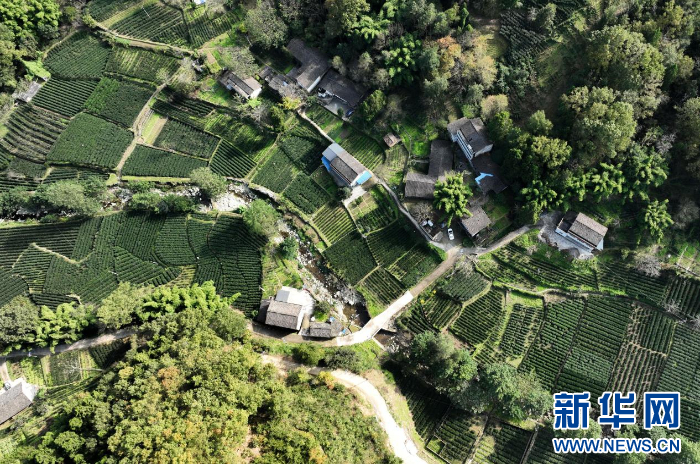 马家山村茶园、房屋错落有致。新华网发(冉创昌 摄)