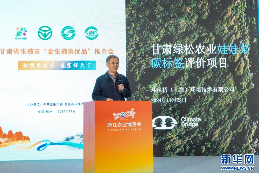 新华网兰州11月24日电(王小华 钱振波)22日,在2024浙江农业博览会上,张掖市农业农村局推介发布了甘肃省首个农产品碳标签成果。甘肃绿松农业发展有限公司生产的每千克娃娃菜,其碳排放值仅为0.375千克二氧化碳当量,取得碳标签(碳足迹)证书。