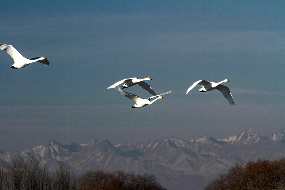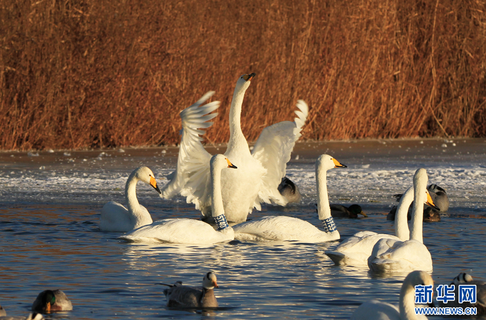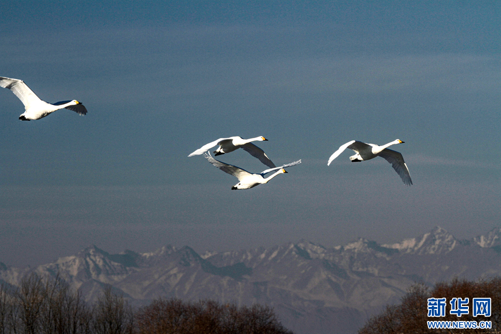 【大美甘肃】甘肃张掖:冬日天鹅舞翩翩-新华网