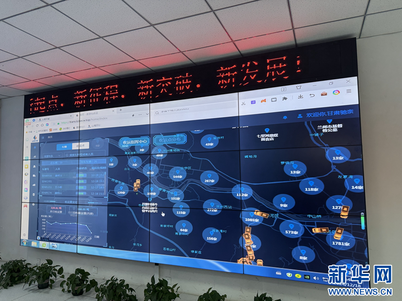 在甘肃驰奈生物能源系统有限公司中控室,电子屏幕闪烁不停,实时显示兰州市各区域餐厨废弃物收集运转情况。