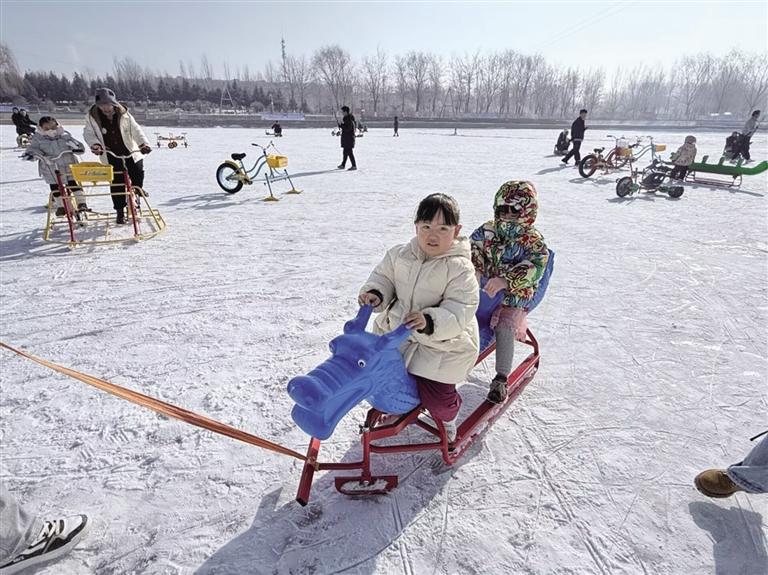 雪地滑板、冰锥、单双人雪地自行车、蜘蛛爬犁、雪地碰碰球……在刚刚开门迎客的百花公园第三届冰雪嘉年华现场,许多游客带着孩子来体验各类雪地游戏,萌娃们在滑道上“纵享丝滑”,现场欢声笑语、尖叫声不断,整个百花公园上演着“速度与激情”。主办方还精心准备了相关冰雪主题的文艺表演,欢快的音乐和精彩的舞蹈满足了市民和游客对冰雪世界的无限憧憬。据统计,开业第一天接待游客1000余人次。