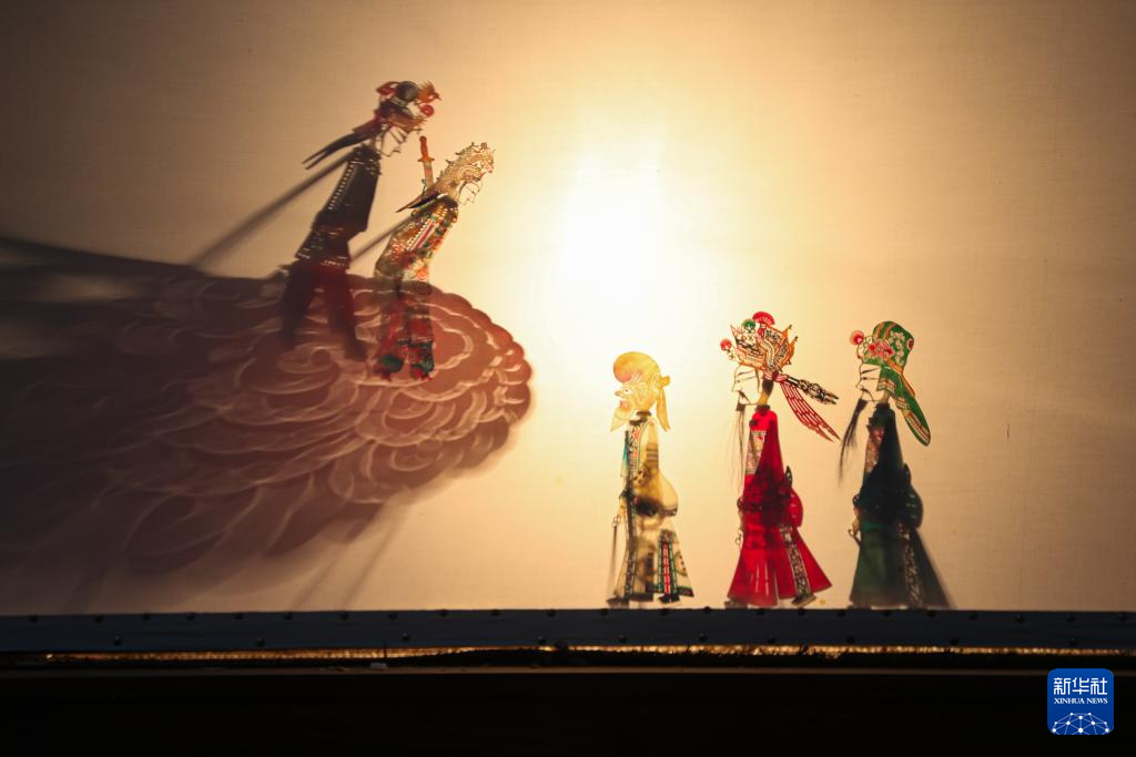 1月8日,在庆阳市环县环州故城皮影馆,皮影艺人排练皮影戏传统剧目《白蛇传》。新华社记者 郎兵兵 摄
