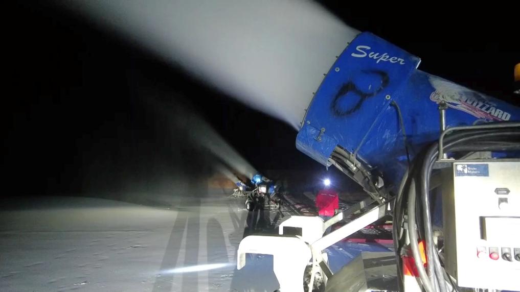 随着一年一度冰雪季的到来,在甘肃白银国家雪上项目训练基地华达滑雪场,52岁的罗崇贵和工友们又开始了年年“寒夜造雪”的忙碌。之所以选择在夜间造雪,是因为夜间气温较低,湿度相对较大,更有利于造雪机造出高质量的雪,并且能减少白天对游客的影响。