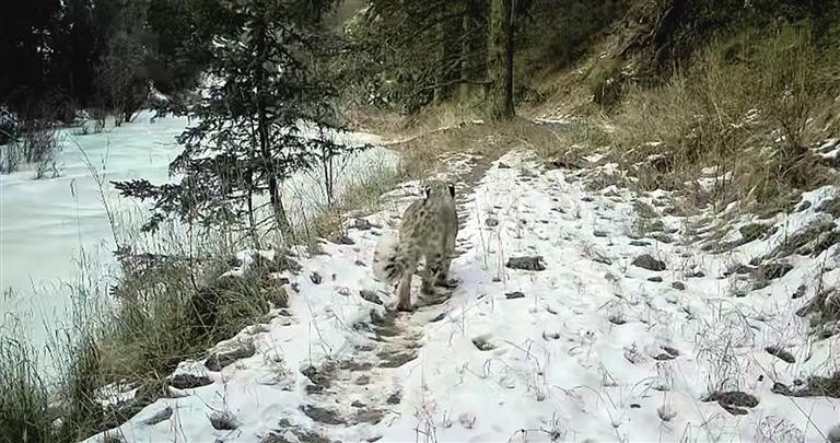 近日,甘肃祁连山国家级自然保护区管护中心寺大隆自然保护站柳树园资源管护站工作人员在回收架设的红外相机时,惊喜地发现了国家一级保护野生动物雪豹悠闲漫步的清晰影像。