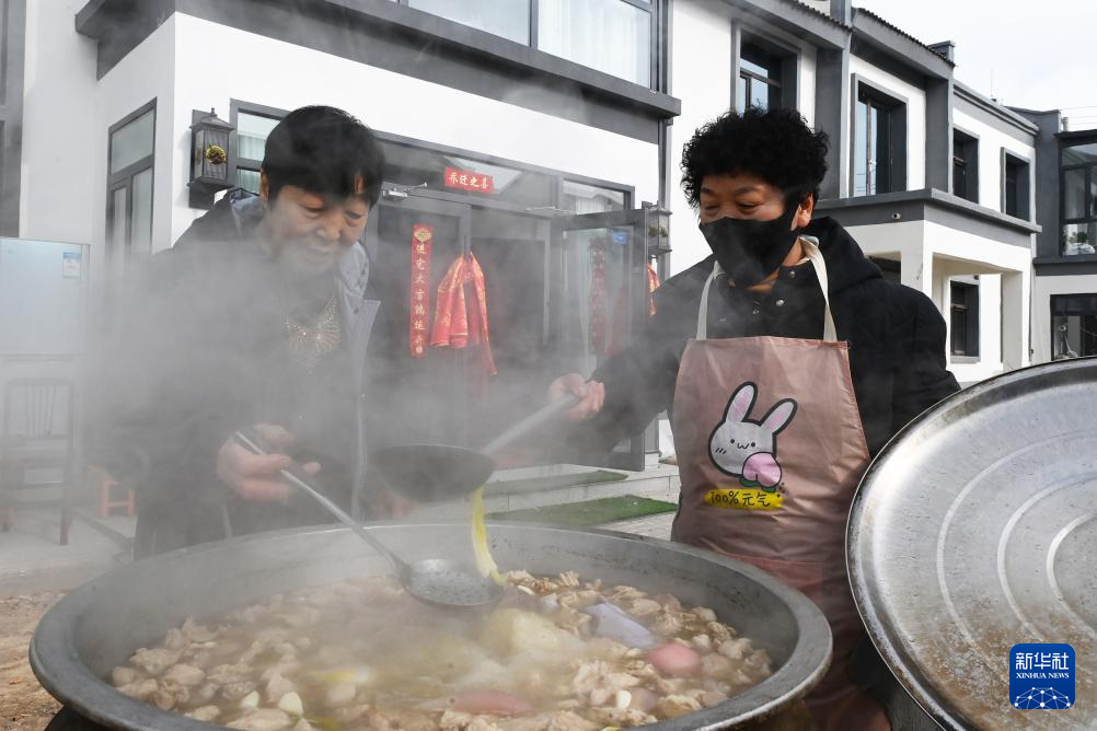 1月15日,在古浪县大靖镇三台村生态及地质灾害避险搬迁安置点,吴明月的亲友们准备乔迁的午餐羊肉烩菜。