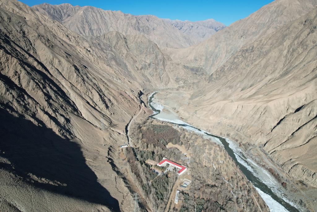 冬日中的甘肃祁连山国家级自然保护区管护中心寺大隆自然保护站柳树园资源管护站(无人机照片)。新华社记者张睿 摄