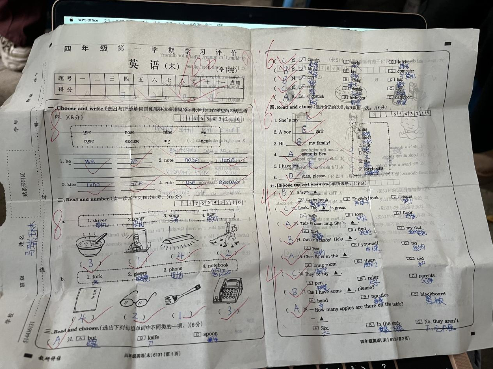 马瑞琳的满分试卷。本报记者 张玉洁 摄