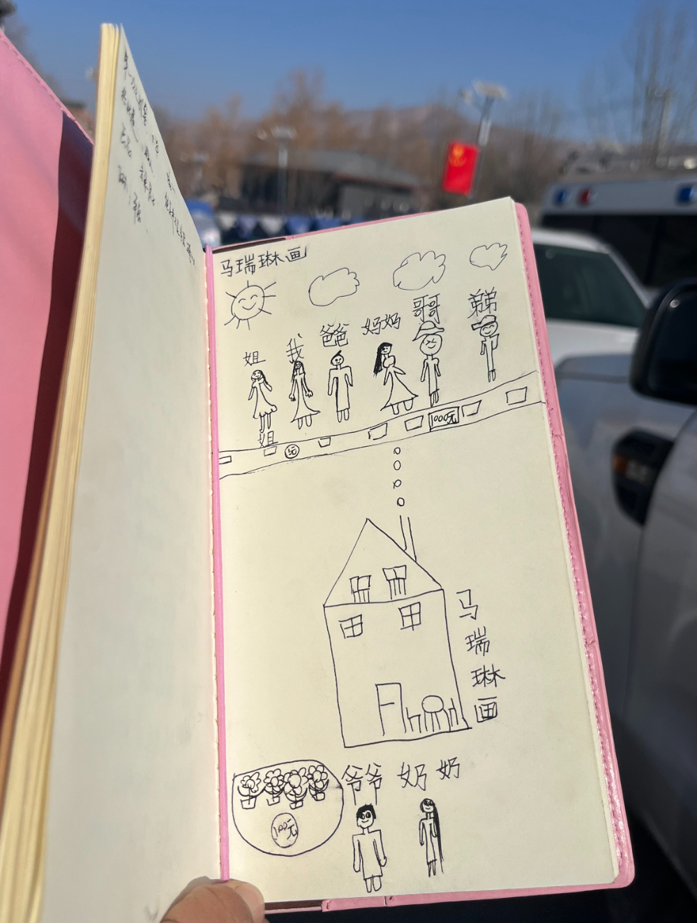 2023年末,在甘肃积石山地震灾区的救灾帐篷里,一位扑闪着大眼睛的小女孩,在我的采访本上画下梦想中的家园:灿阳之下,有大大的房子、快乐的家人,还有种满向日葵的花园。