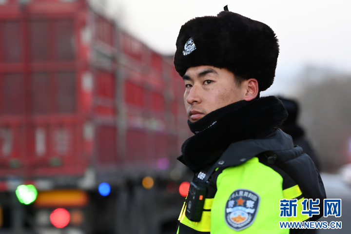 马福良在道路上执勤。 新华社记者 范培珅 摄