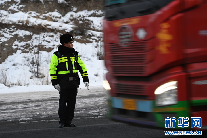 这是乌鞘岭中队中队长马福良在道路上执勤。新华社记者 范培珅 摄