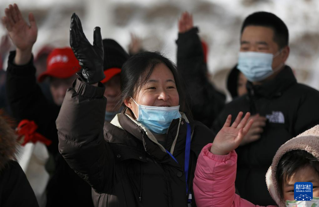 2月7日,甘肃省定西市外出务工人员与送行的人们挥手道别。新华社记者 张睿 摄