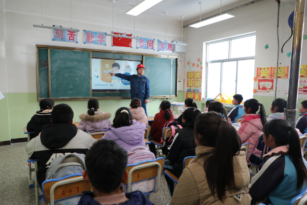 2月24日,国网渭源县供电公司工作人员在元古堆小学讲授”开学第一课“。(何莹摄)