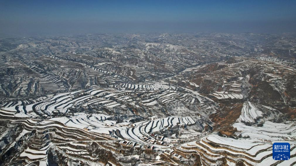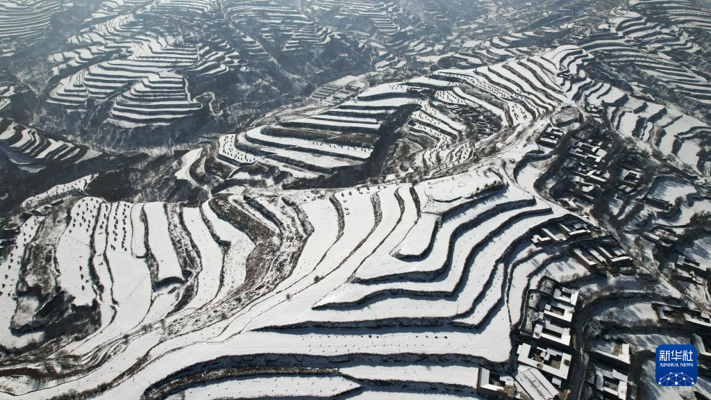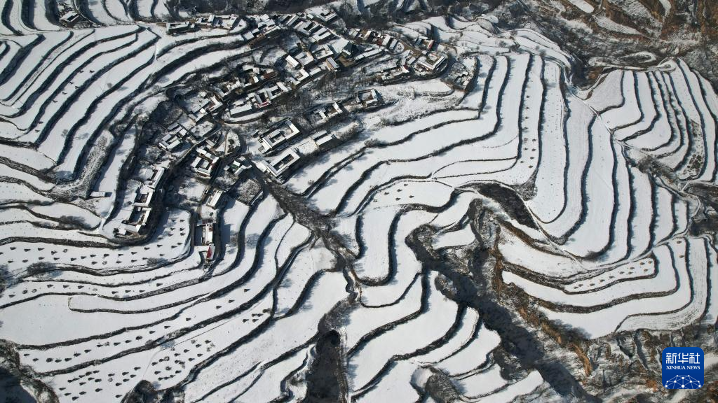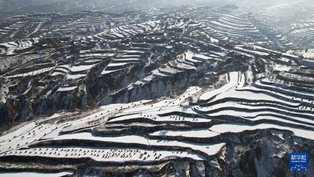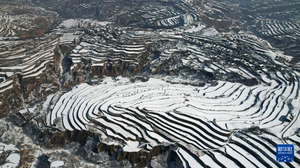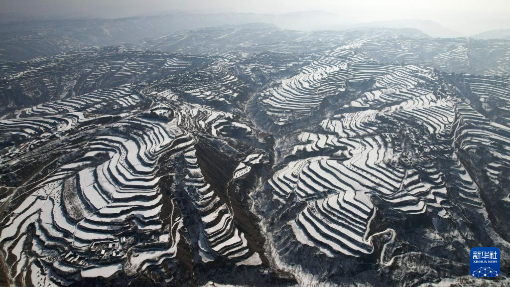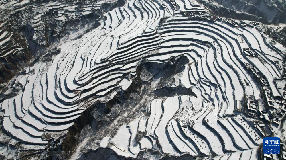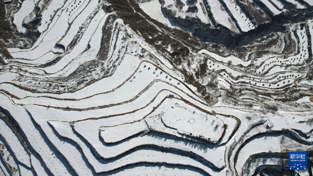 当日,一场春雪过后,甘肃省临夏回族自治州东乡族自治县境内的梯田和山峦被勾勒出“大地的指纹”。