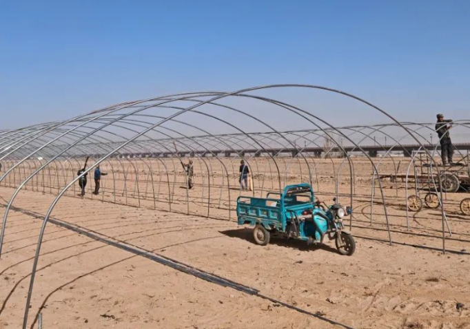 一年之计在于春,一年好景看春耕。走进肃州区上坝镇上红村6组,标准化钢架拱棚建设项目正在如火如荼进行中,村民们忙着搬运钢架、绑扎钢筋,一座座崭新的全钢架拱棚拔地而起,成为产业结构调整的“新引擎”,更是通往富民强村的“致富桥”。