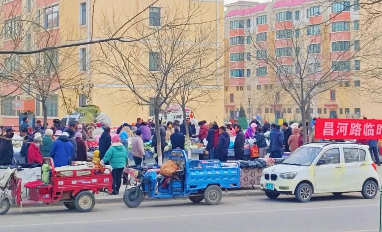 3月12日,记者来到河西堡镇昌河路社区临时“便民早市”。只见摊位排列得整齐有序,各个区域功能划分清晰。附近居民纷纷走进市场,挑选自己需要的物品。市场里,新鲜的蔬菜水果琳琅满目,日用品种类丰富一应俱全,还有热气腾腾、散发着诱人香气的油条。此起彼伏的叫卖声交织在一起,让整个市场充满了浓浓的烟火气息。