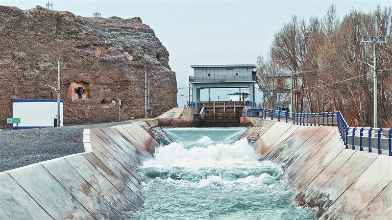 疏勒河昌马渠首枢纽开闸放水。省疏勒河中心供图