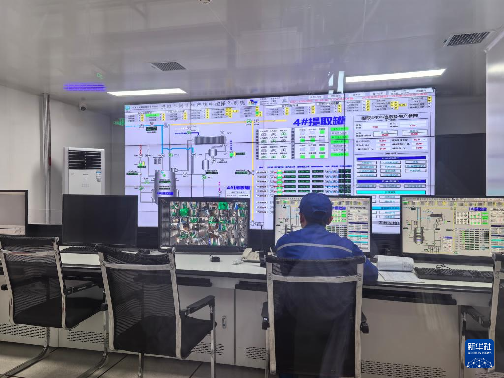 甘肃普安制药股份有限公司企业员工在中控室实时监控产品生产参数。新华社记者白丽萍摄