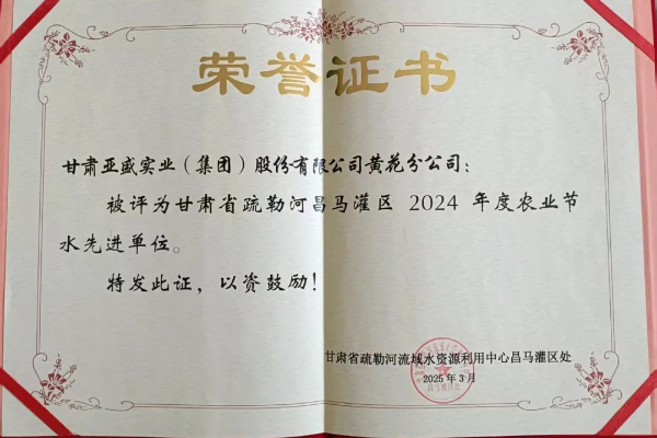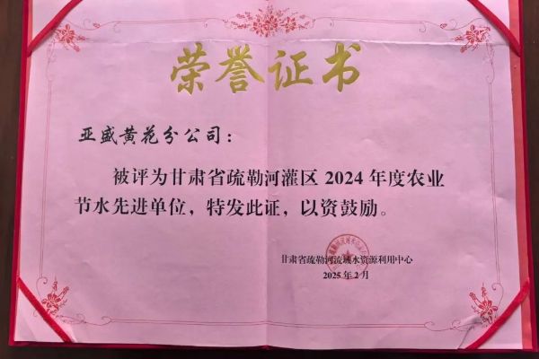 近日,亚盛黄花分公司凭借在节水工作上的突出表现,荣获甘肃省疏勒河流域水资源利用中心2024年度“农业节水先进单位”、甘肃省疏勒河昌马灌区“农业节水先进单位”及花海灌区“农业节水先进集体”等荣誉。