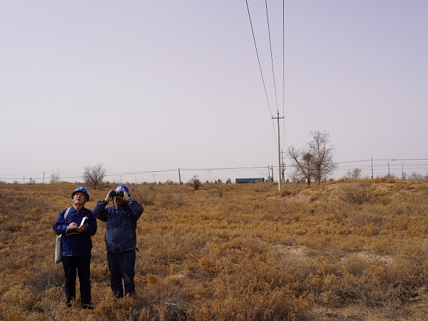 “再过一月,八步沙里就变绿了,一年又一年,生态越来越好了。”从1号杆塔到77号杆,从日出到烈日当头,石建平和朵开科在半天时间内巡完了整条分支线路,两人细致地查看线路周边植被情况,详细记录下树障隐患,充分利用高倍望远镜,对杆塔上的金具、绝缘子等设备进行查看,确保及时发现潜在隐患。