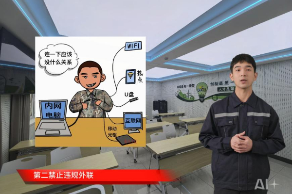 随着“平电教培” LOGO 在智慧教室屏幕上徐徐展开,短视频正式开始。在“学员须知”环节,AI数字人首次亮相,以清晰语音配合动态图文,依次展示培训考勤制度、课堂纪律要求。针对“无烟环境”“信息安全”等管理重点,视频采用动画弹窗、违规行为标记及警报音效等技术手段将抽象制度转化为可感知的视觉听觉信号,让学员对管理红线一目了然。