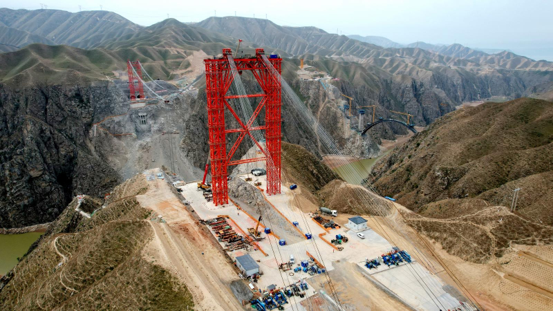 洮河特大桥是兰永临高速公路建设的“咽喉”工程,同样也是重要的关键控制性工程,大桥全长562.16米,主桥采用净跨400米上承式钢管混凝土拱桥设计。不久前洮河特大桥500吨大型缆索吊装系统试吊成功,标志着该段项目建设正式进入主体结构的施工阶段。