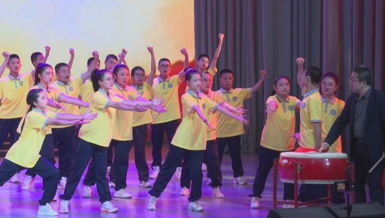 文艺汇演现场,校级民乐团表演的器乐演奏《象王行》《精卫》率先登场,古筝、二胡等传统民族乐器交织出磅礴气势的旋律,结合带有细腻韵味的扇子舞,彰显出学校在中华优秀传统文化教育方面的深耕细作。随后,饱含深情的情景朗诵《山河铭记・盛世如歌》,唤醒人们对文化遗产重视的音乐剧《逃出大英博物馆》、传递爱国情怀的情景剧《穿越时空的对话》、诠释学生们对15分钟大课间改革喜爱的舞蹈《魅力课间 青春向党》等14个精心编排的节目轮番上演,全方位展现出学生们的艺术才华和青春活力。台下,600名师生和50位家长代表,纷纷举起手机记录演出的高光时刻,不时为台上的表演者送上阵阵掌声与喝彩,现场气氛热烈非凡。