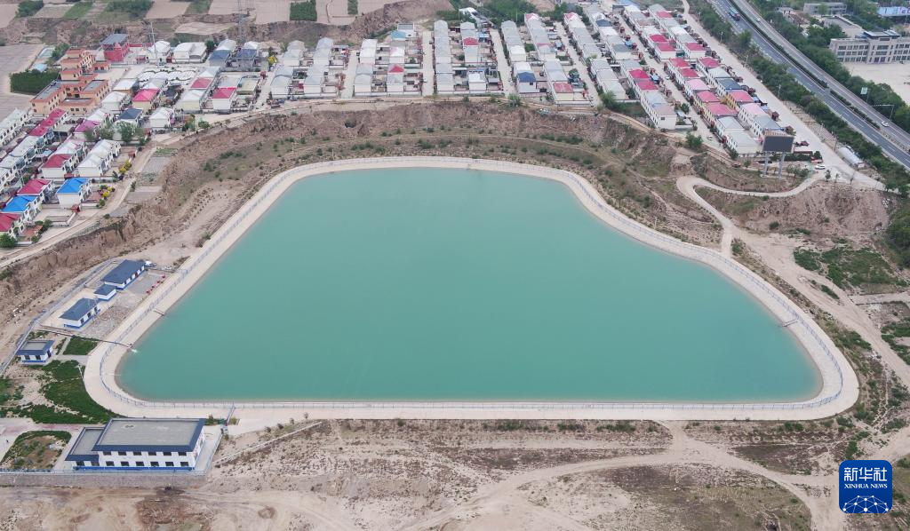 5月27日在甘肃省定西市安定区巉口镇拍摄的调蓄水池(无人机照片)。新华社发(王克贤 摄)