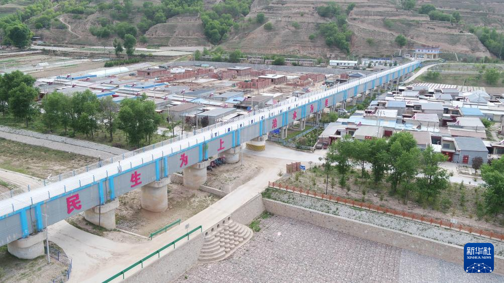 5月26日在甘肃省定西市安定区内官营镇拍摄的引洮工程渡槽(无人机照片)。新华社发(王克贤 摄)