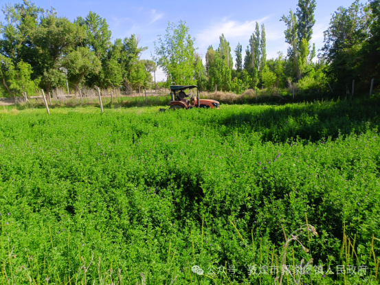 仲夏时节,敦煌市郭家堡镇的苜蓿地里呈现出一片繁忙的景象。成片的紫花苜蓿随风摇曳,散发着乡村田野里大自然的气息,满目尽带碧绿。种植户们抢抓时机,忙碌地开展收割工作,机器的轰鸣声奏响了一曲现代农业的丰收乐章。作为“牧草之王”的紫花苜蓿,凭借其高蛋白含量和良好的牲畜适口性,已成为当地农民增收的“黄金产业”。