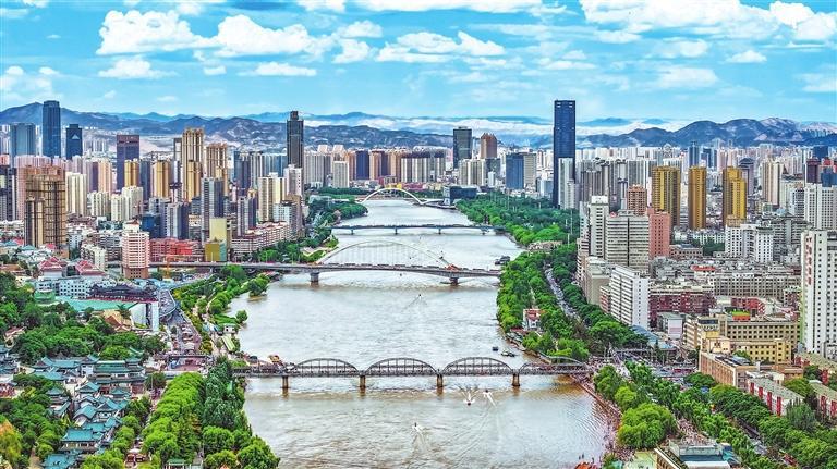 蓝天白云映衬下兰州风景如画