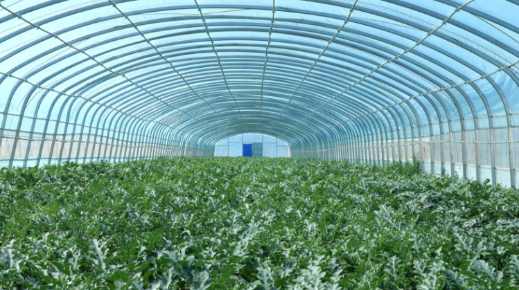 七月中旬的阳光泼洒在永昌县朱王堡镇梅南村的甘肃华宇现代农业示范园里,连片的蓝色温室大棚如同一汪沉静的湖泊,在田野间铺展开来。它们一座挨着一座,弧形的棚顶反射着天光,既透着科技的利落感,又藏着孕育生机的温柔。