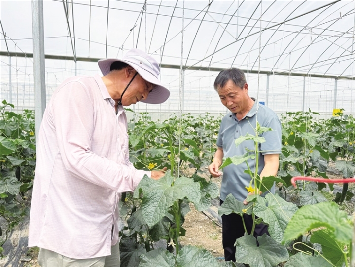 在泉湖镇万亩高效设施蔬菜产供销一体化示范基地,今年新建的500亩钢架拱棚小区已全面投产。这里不仅有整齐排列的大棚,还配套建设了3.8公里产业道路,一座集智慧数字农业、集约育苗、冷链仓储等功能于一体的现代农业综合体已初具规模。