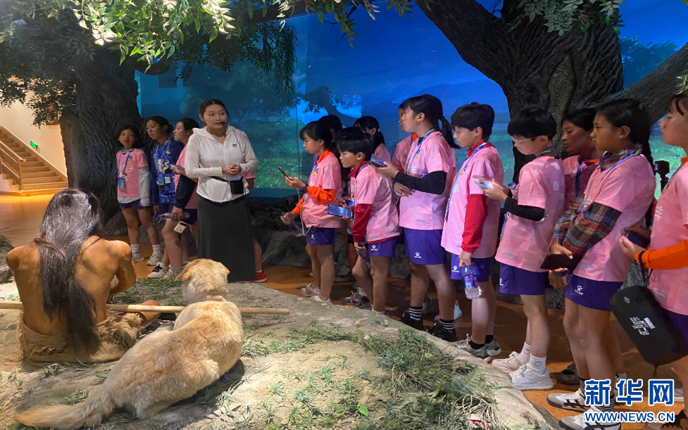 6日,参加2025“黄河母亲杯”沿黄河九省(区)青少年足球邀请赛的小球员们参观兰州彩陶馆。新华网发(王梓涵 摄)